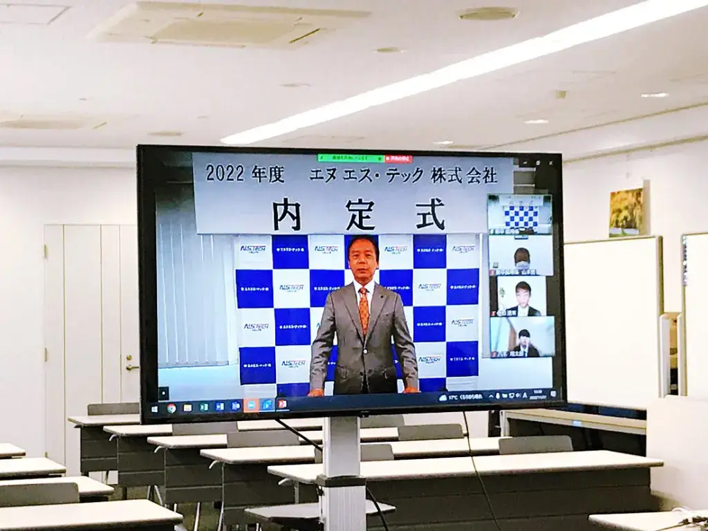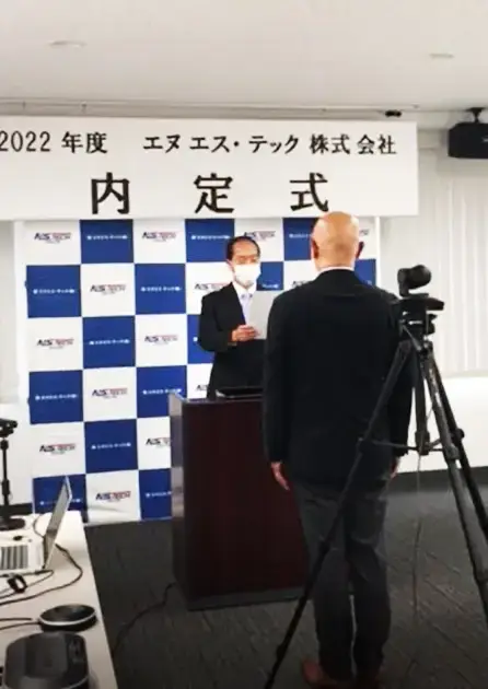 2023年4月入社予定の内定者をオンラインに招いて内定式を開催しました。2度目のオンラインということで、昨年の経験を活かし、綿密なリハーサルと準備ができました。