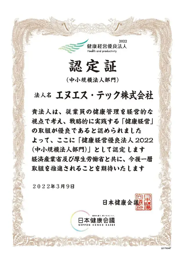 経済産業省 認定制度「健康経営優良法人」に認定されました。